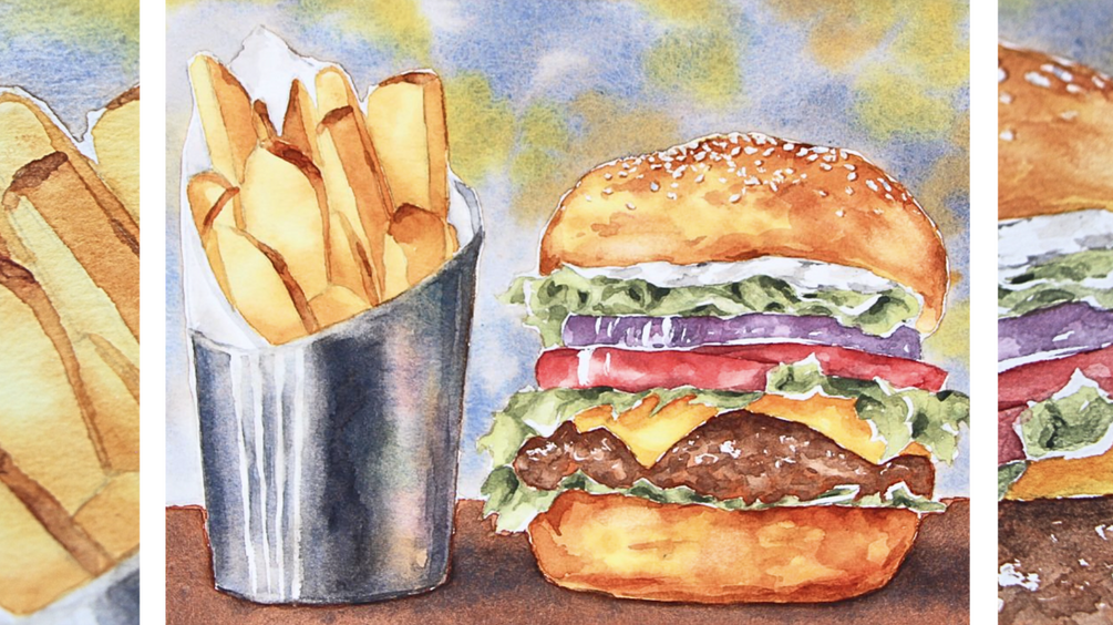 Watercolor Food Illustration: Burger and Fries